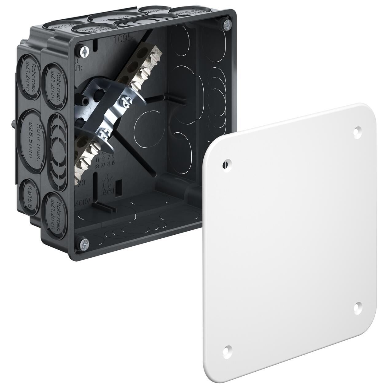 → Završni poklopac sa zavrtnjem za montažu u skladu sa VDE.