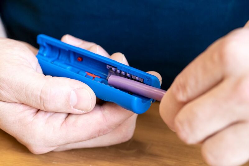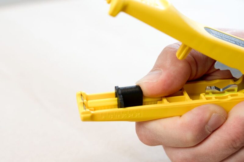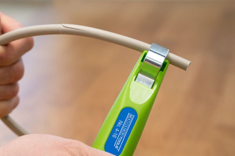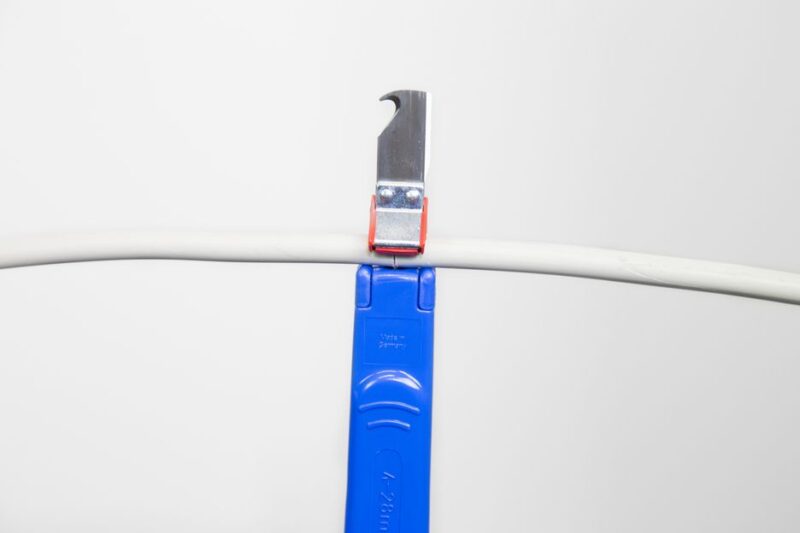 Alat Cat Cable-Stripper No. 10 obezbeđuje bezbedno i udobno skidanje izolacije svih uobičajenih kablova za prenos podataka i mrežnih kablova prečnika 4.5 – 10 mm. Koristi se za sve standardne mrežne kablove (Cat 5, Cat 6, Cat 7) i kablove sa upredenim paricama. Dubina sečenja ne mora da se podešava ručno. Ergonomski oblik ručke omogućava lako rukovanje alatom. Njegova prepoznatljiva ručka čini Cat Stripper No. 10 udobnim za upotrebu i sprečava klizanje ruke, što svakodnevni rad čini lakšim i bezbednijim.