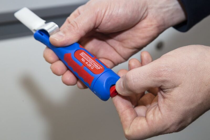 Alat za skidanje izolacije kablova Cable Stripper Flat & Round ima mogućnost zamene unutrašnjeg sečiva originalnim rezervnim sečivom. Još dva sečiva su dodata u dršku ovog ručnog alata. Sečivo za kružno sečenje spoljašnjeg omotača ili izolacije omogućava da se spoljašnji plašt može lako ukloniti čak iu veoma uskim prostorima, kao što su ugradne dozne, razvodne kutije ili kablovski regali. Poseban dizajn omogućava skidanje dužih delova izolacije i na vrhu i na dnu alata. Dodatna funkcija skidanja izolacije je integrisana u kućište i omogućava blankiranje svih uobičajenih višežilnih i punih provodnika sa poprečnim presekom između 0.5 i 6.0 mm².
