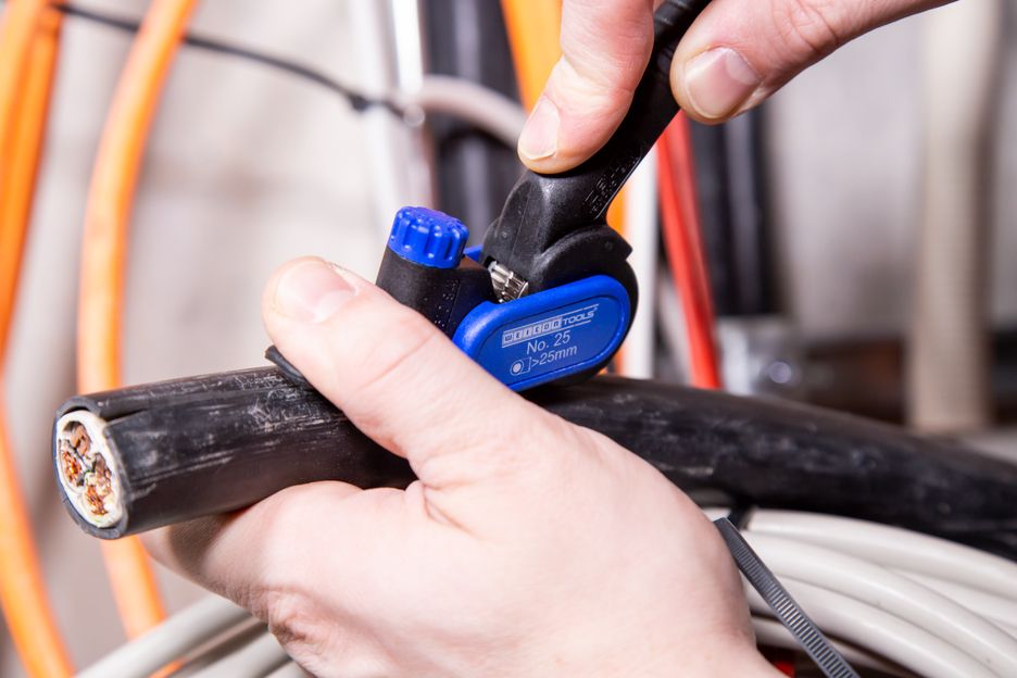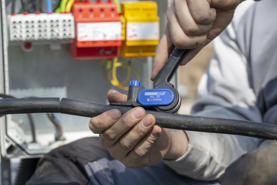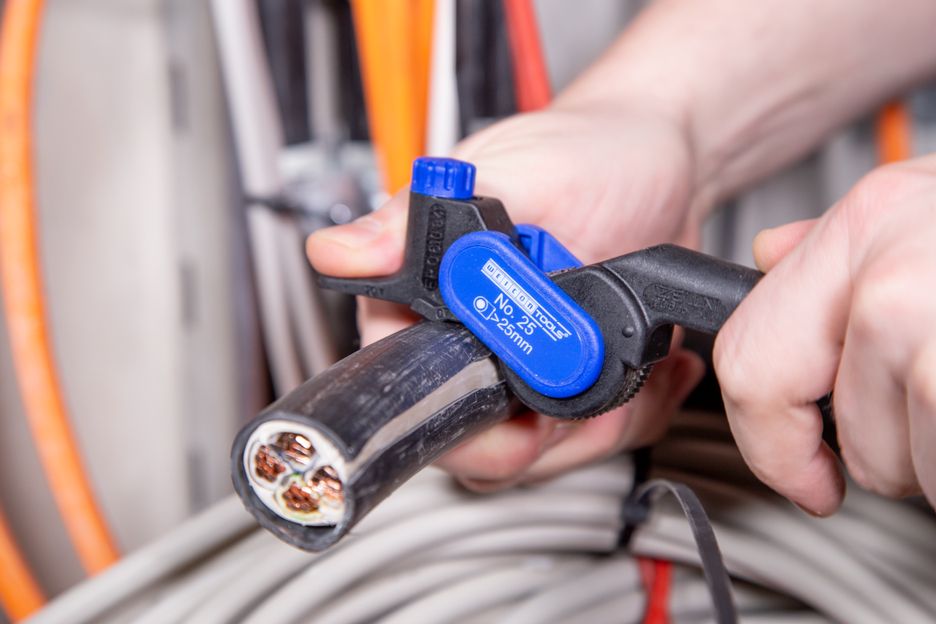 → Skidanje izolacije kablova prečnika od 25 mm.