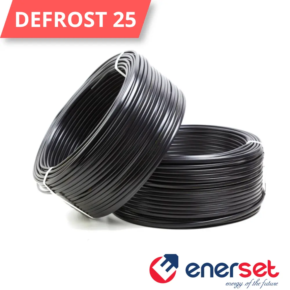 Grejni kablovi iz serije DEFROST 25 su posebna grupa proizvoda sa namenjena za otapanje snega, zaštitu od smrzavanja i održavanje temperature. Grejne sekcije se izrađuju od sirovog, visokokvalitetnog kabla serije SJXFJ5 koji su proizvedeni u skladu sa standardom IEC 60800. Izrada prema važećim standardima za ovu vrstu proizvoda, linijska snaga od 25W/m, UV stabilna izolacija i mehanička klasa M1 čine da grejni kablovi iz serije DEFROST 25 nalaze primenu u različitim projektima.