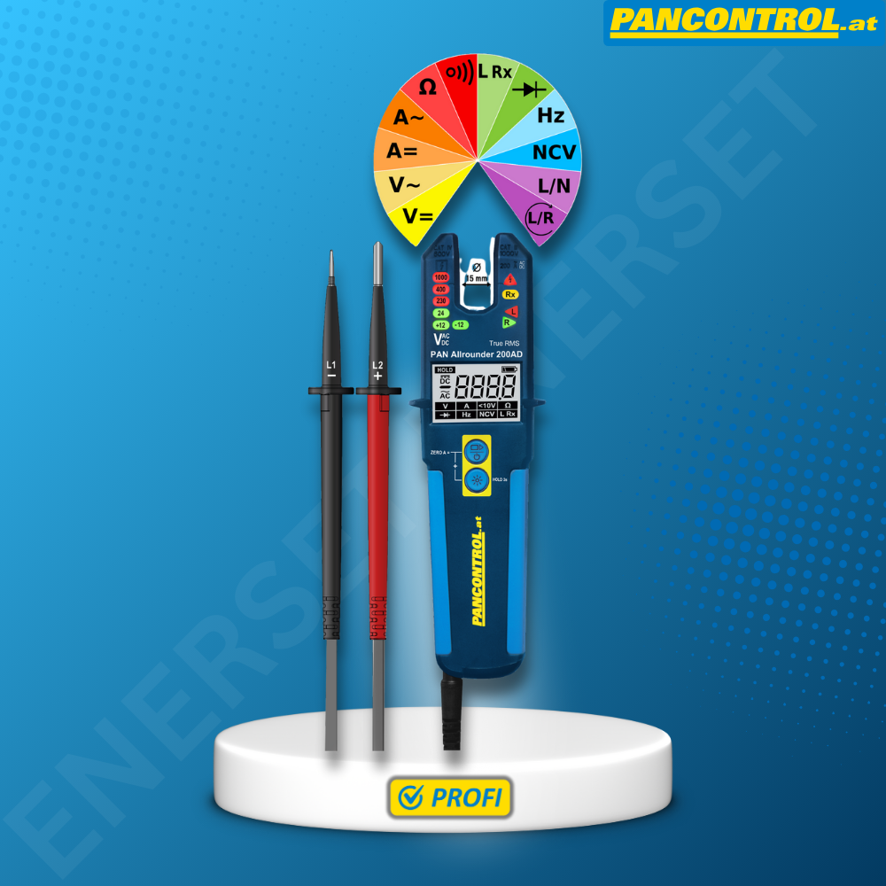 PAN Allrounder 200AD je 2 višenamenski ispitivač napona, koji može služiti za ispitivanje kontinuiteta, smera obrtnog magnetnog polja, ispitivanje dioda, bezkontaktnu detekciju napona (NCV), kao i za merenje napona, struje, otpora i učestanosti. Ispitivač napona poseduje dve ispitne pipalice, koje se mogu odvojiti od uređaja i zameniti u slučaju kvara. Uz uređaj se isporučuju navojne kontakt čaure i kapice za vrhove ispitnih pipalica u praktičnom držaču. Ispitivač napona i struje PAN Allrounder 200AD ima funkciju automatskog isključivanja i praktičnu LED lampu za rad u slabo osvetljenim prostorima.