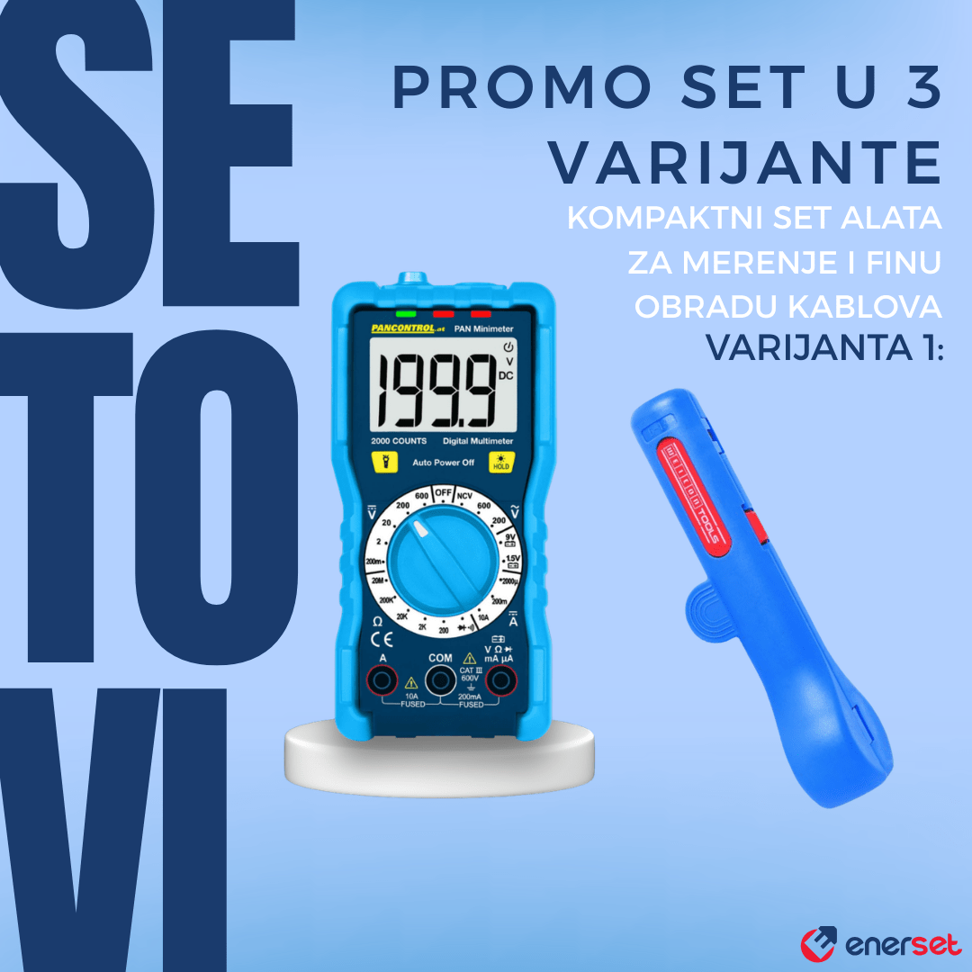 Ovaj set je projektovan za maksimalnu praktičnost i svestranost, idealan za profesionalce koji su stalno u pokretu. Centralni deo seta je kompaktni digitalni multimetar PAN Minimeter, koji lako staje u svaki džep, a u kombinaciji sa jednim od tri specijalizovana alata za obradu kablova, ovaj set pokriva širok spektar zadataka – od osnovne pripreme kablova do preciznog krimpovanja.