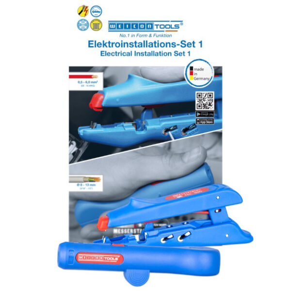 Komplet alata Electrical Installation Set 1 nudi kombinaciju alata za najčešće primene u kućnim instalacijama. Različiti alati ispunjavaju najviše zahteve kvaliteta i pogodni su za upotrebu u trgovini i industriji, kao i za ambiciozne hobije uradi sam. Komplet alata Electrical Installation Set 1 uključuje alat za skidanje izolacije koji je idealno prilagođen za skidanje spoljašnjeg omotača okruglih kablova. Pomoću klešta za presovanje, koja su takođe u kompletu, možete da blankirate fine provodnike i da ih profesionalno montirate sa hilznama na krajevima žice koristeći funkciju presovanja. Komplet alata se od sledećih proizvoda: