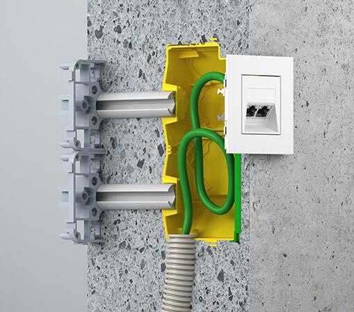 Zahvaljujući velikom unutrašnjem volumenu i dubini od 91 mm, ova kutija nudi obiman prostor za konfigurisanje kablova, smeštaj kablovskih rezervi i povezivanje multimedijalnih priključaka. Moguće je ispoštovati sve propisane radijuse savijanja za osetljive kablove (npr. mrežne, antenske), čime se garantuje optimalan prenos signala i podataka.