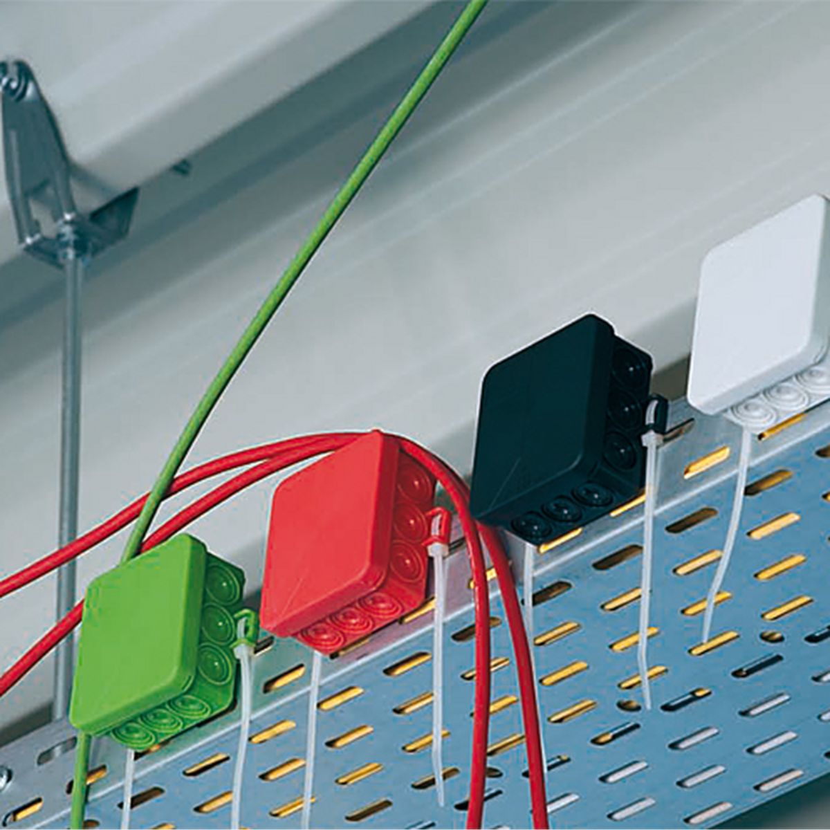 Sa praktičnim detaljima kao što su spoljno kačenje i samozaptivajući uvodi za kablove, ove kutije su idealno rešenje za formiranje razvodnih kola u različitim primenama, kao što su osvetljenje, povezivanje električnih uređaja i slično. Poklopac se može čvrsto fiksirati na 4 ugla kutije tokom instalacije, čime se sprečava njegov gubitak.