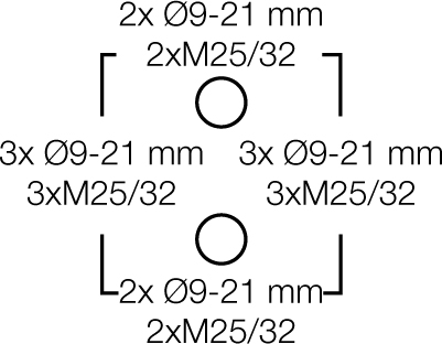 Razvodne kutije DK 1000 B se isporučuju sa integrisanim elastičnim zaptivnim membranama, koje mogu da se uklone radi instalacija kablovskih uvodnika, opseg zaptivanja Ø 9,0 – 21,0 mm. Jedan kablovski ulaz na leđima kutije, opseg zaptivanja Ø 9,0 – 20,0 mm. Kod razvodnih kutija DK 1000 B zatvaranje poklopca je omogućeno bez dodatnog alata. Kutija se isporučuje sa vrpcom za držanje poklopca i spoljnim konzolama za kačenje na zid.