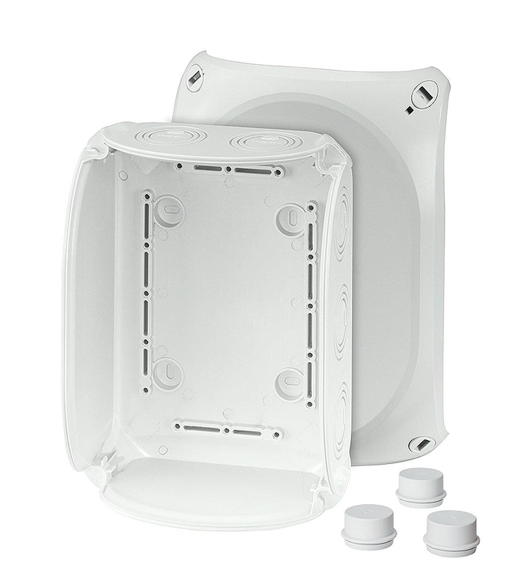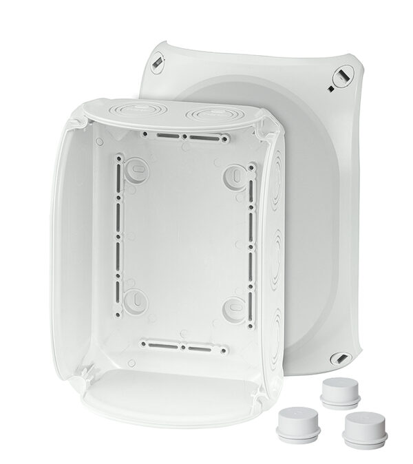 Razvodne kutije DK 1600 se isporučuju sa perforacijama M25/M32/M40, koje mogu da se izbiju radi instalacije kablovskih uvodnika. Zatvaranje poklopca je omogućeno bez dodatnog alata. Uz razvodnu kutiju se isporučuje: 3 x ESM40 uvodnik (IP55), vrpca za držanje poklopca i spoljne konzole za kačenje na zid.