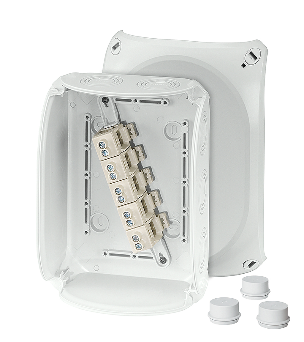 - DK 1610 G : Polikarbonat, 210x155x92mm, stezaljke 5P 2.5-10mm², boja siva, RAL 7035