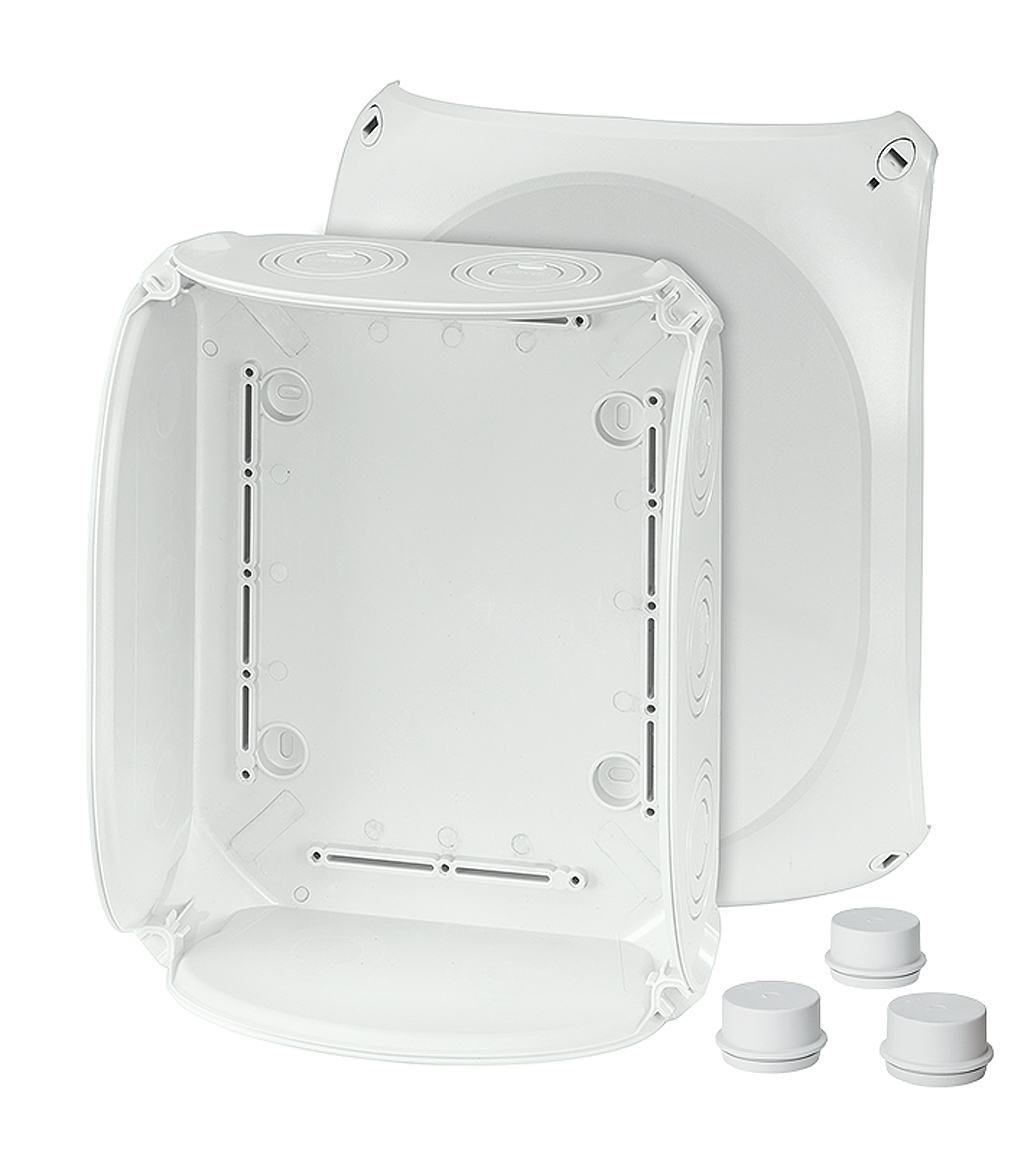 Razvodne kutije DK 2500 G se isporučuju sa perforacijama M25/M40/M50, koje mogu da se izbiju radi instalacije kablovskih uvodnika. Zatvaranje poklopca je omogućeno bez dodatnog alata. Uz razvodnu kutiju se isporučuje: 3 x ESM40 uvodnik (IP55), vrpca za držanje poklopca i spoljne konzole za kačenje na zid.