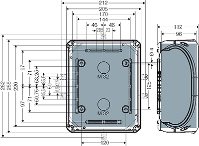 - DK 2525 G : Polikarbonat, 255x205x112mm, stezaljke 5P 6-25mm², boja siva, RAL 7035