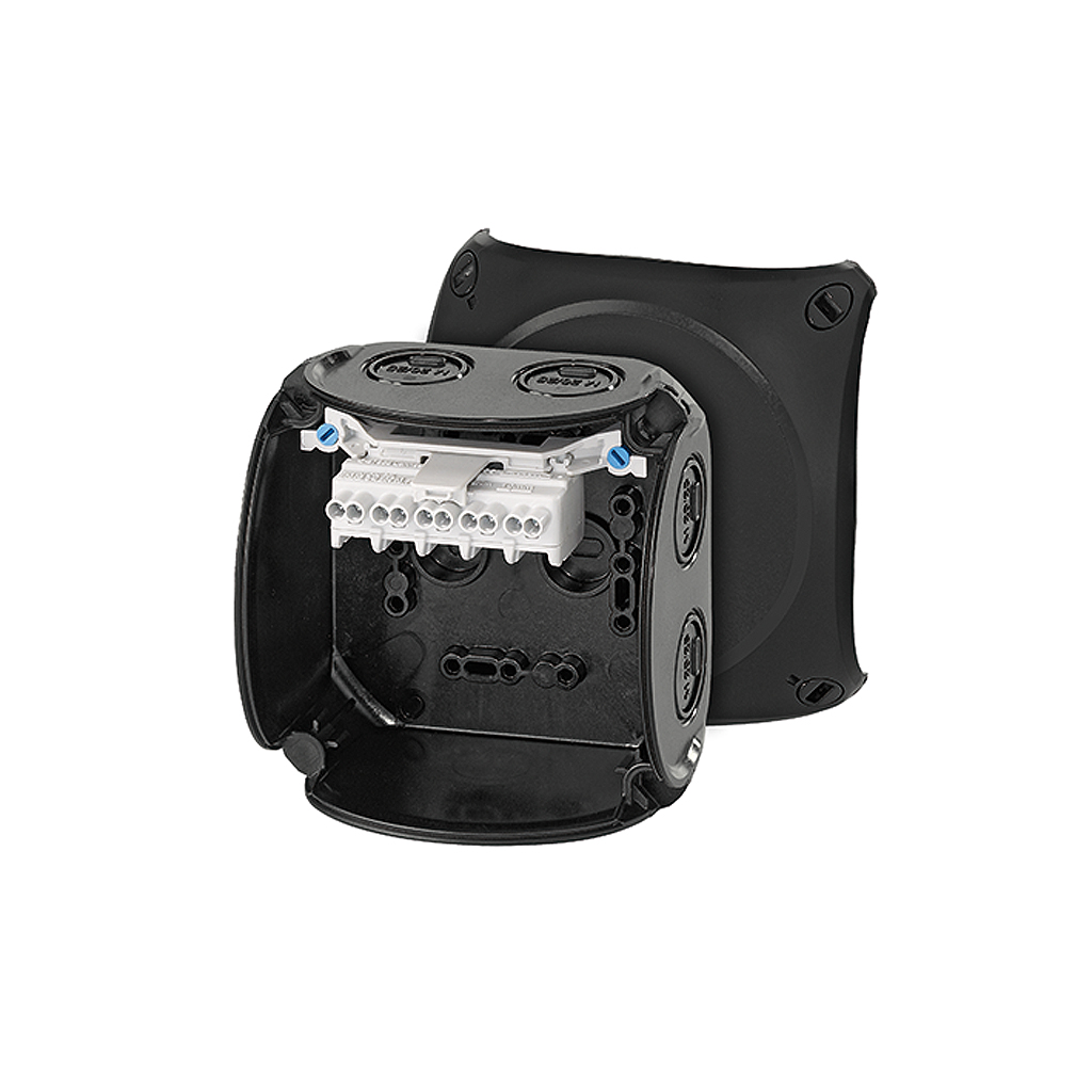 - KF 0404 B : Polikarbonat, 104x104x70 mm, stezaljke 5P 1.5-4mm², boja crna, RAL 9011
