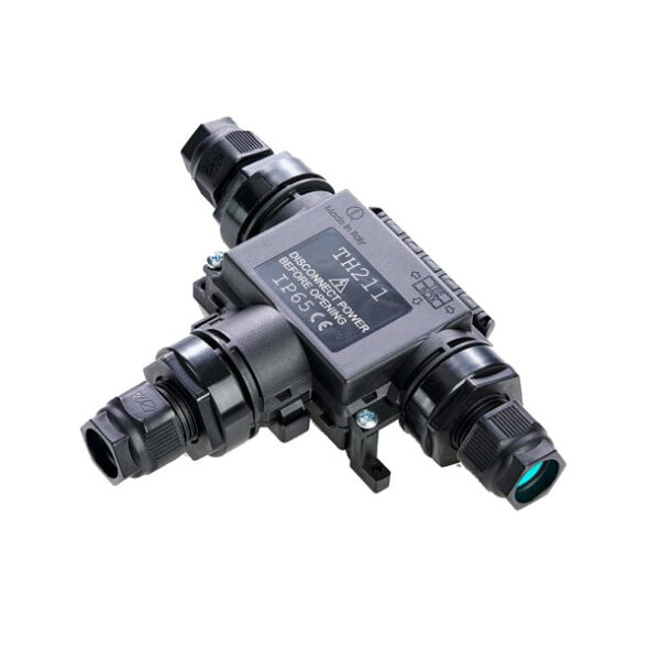Razvodna kutija TH 211 izrađuje se sa 3 kablovska ulaza za kablove prečnika 8.0 do 17 mm ili 7.0 do 13.5 mm. Kablovska kutija se isporučuje sa ili bez rednih stezaljki. Kao prazna može se koristiti za ugradnju elektronike koja je izložena uticajima vlage i atmosferskih uticaja. Stepen zaštite IP65.