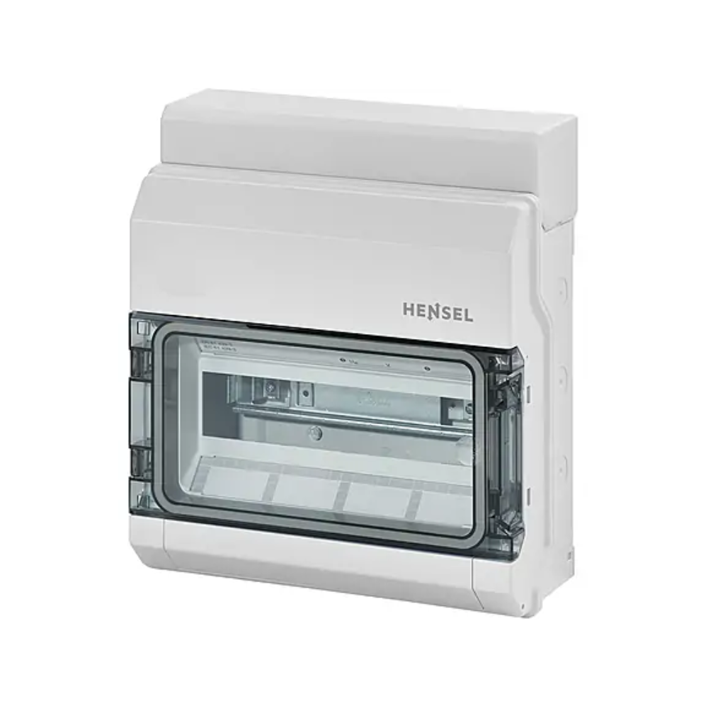 Hensel KV 1512 je mali razvodni orman, projektovan za instalaciju automatskih osigurača i drugih DIN šinskih uređaja do 63 A. Sa kapacitetom od 12 modula, transparentnim vratima i stepenom zaštite IP54, ovaj orman je idealno rešenje za stambene i komercijalne objekte, kako za unutrašnju, tako i za zaštićenu spoljnu montažu (u skladu sa DIN VDE 0100, Deo 737).