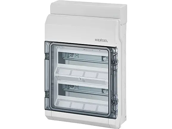 Hensel KV 2524 je mali razvodni orman, projektovan za instalaciju automatskih osigurača i drugih DIN šinskih uređaja do 63 A. Sa kapacitetom od 24 modula raspoređenih u dva reda, transparentnim vratima i stepenom zaštite IP54, ovaj orman je idealno rešenje za zahtevnije stambene i komercijalne objekte, kako za unutrašnju, tako i za zaštićenu spoljnu montažu.