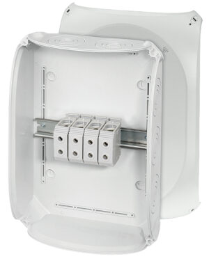 IP65 orman sa prozirnim vratima, 4x DIN šine, set FIXCONNECT klema, trake za obeležavanje, poklopci za neiskorišćene module i pribor za montažu.