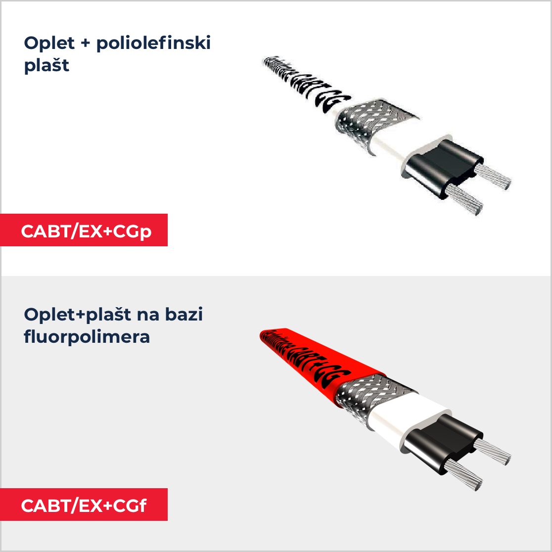 - CABT/Ex + CGf: Sa spoljašnjim plaštom od FEP fluoropolimera, idealan za okruženja sa prisustvom korozivnih i agresivnih hemikalija.