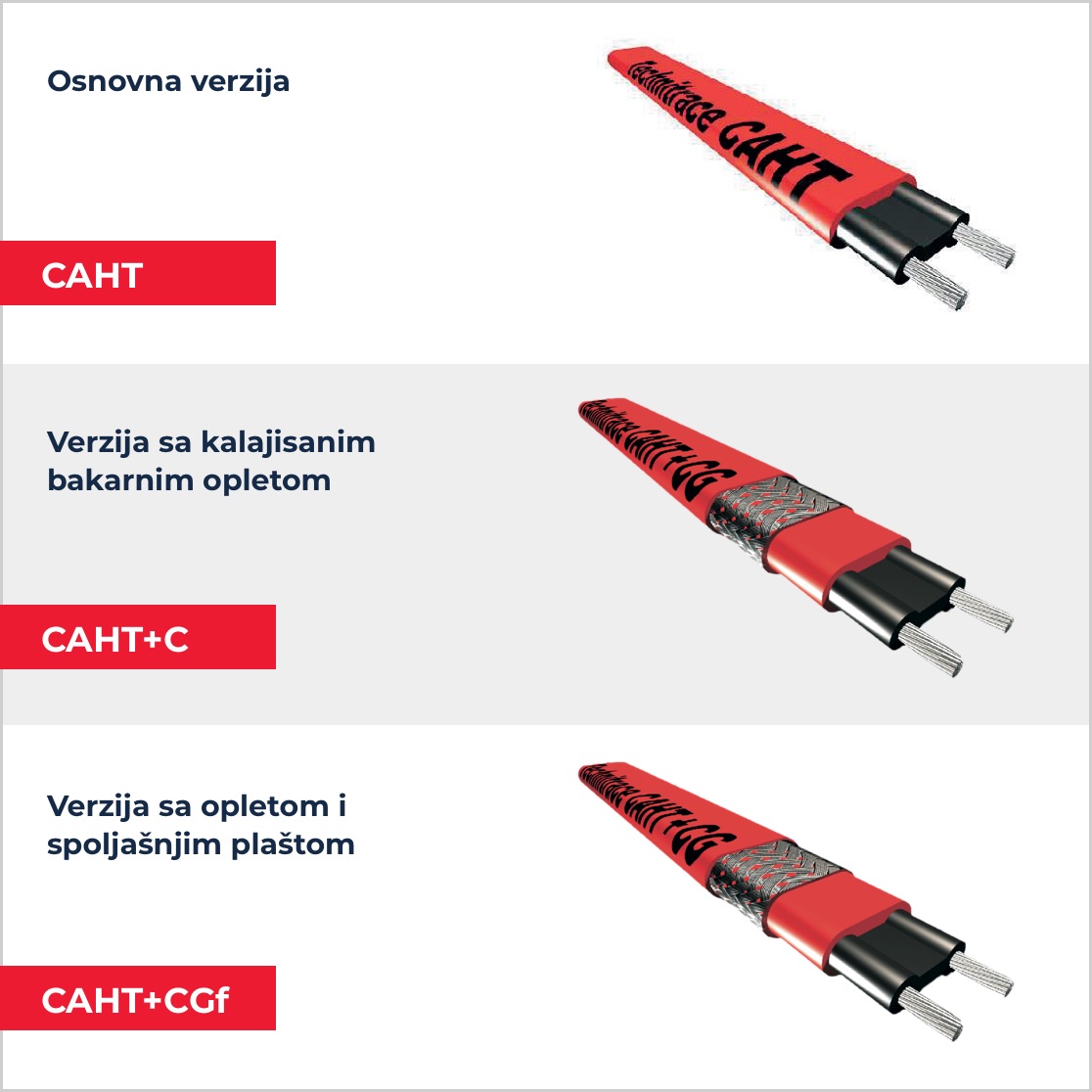 Samoregulišući grejni kabl CAHT, francuskog proizvođača Technitrace, je rešenje najviših performansi za održavanje temperature procesa u industriji. Sa sposobnošću da radi na kontinuiranim temperaturama do +120°C i izdrži povremeno izlaganje pari do +200°C, ovaj grejni kabl je idealan za petrohemijsku, hemijsku i farmaceutsku industriju.