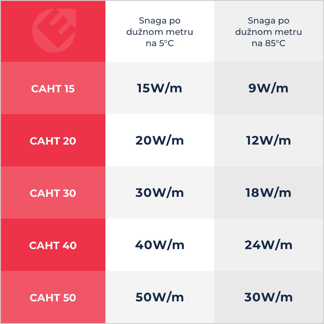 | Vrsta proizvoda | Samoregulišući grejni kabl |