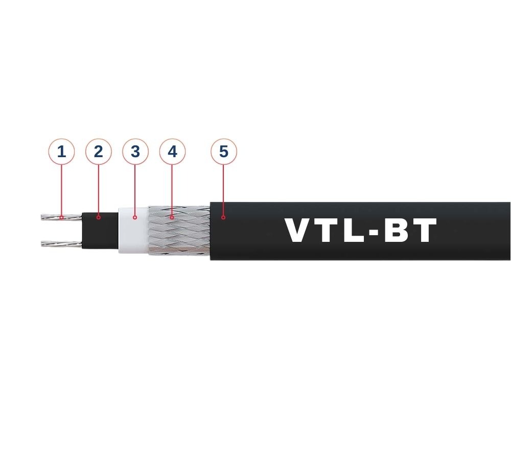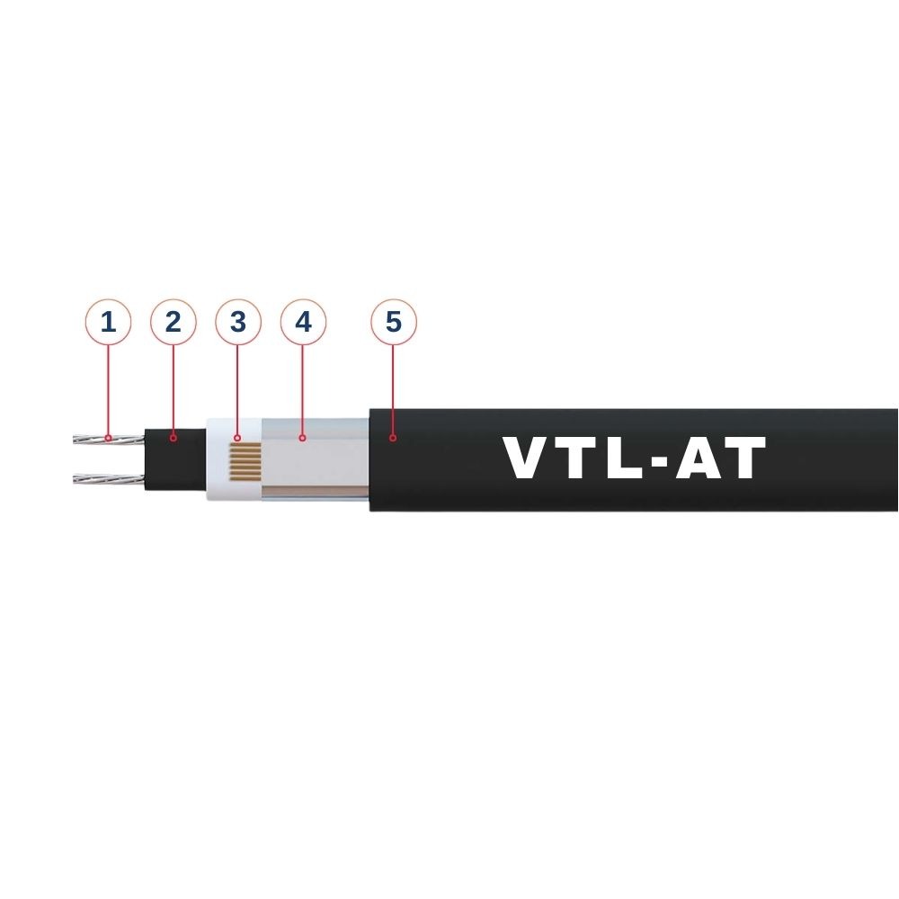 Samoregulišući grejni kabl VTL je kompaktan industrijski samoregulišući grejni kabl, dizajniran za zaštitu od smrzavanja cevovoda i rezervoara u bezbednim zonama i otapanje snega i leda iz oluka. Njegove dimenzije i veliki izbor izlaznih snaga, pruža mogućnost raznih primena.