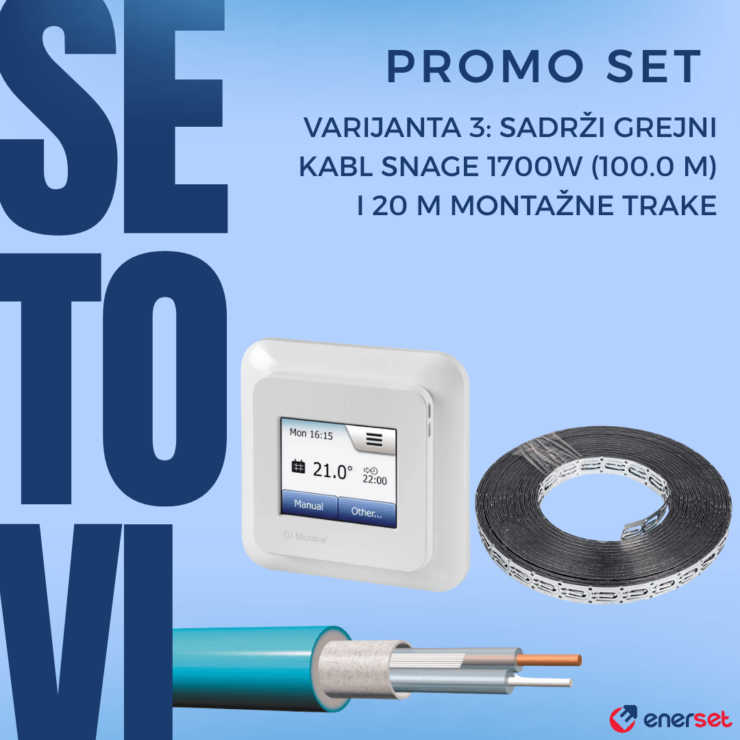 • Varijanta 3: Sadrži grejni kabl snage 1700W (100.0 m) i 20 m montažne trake.