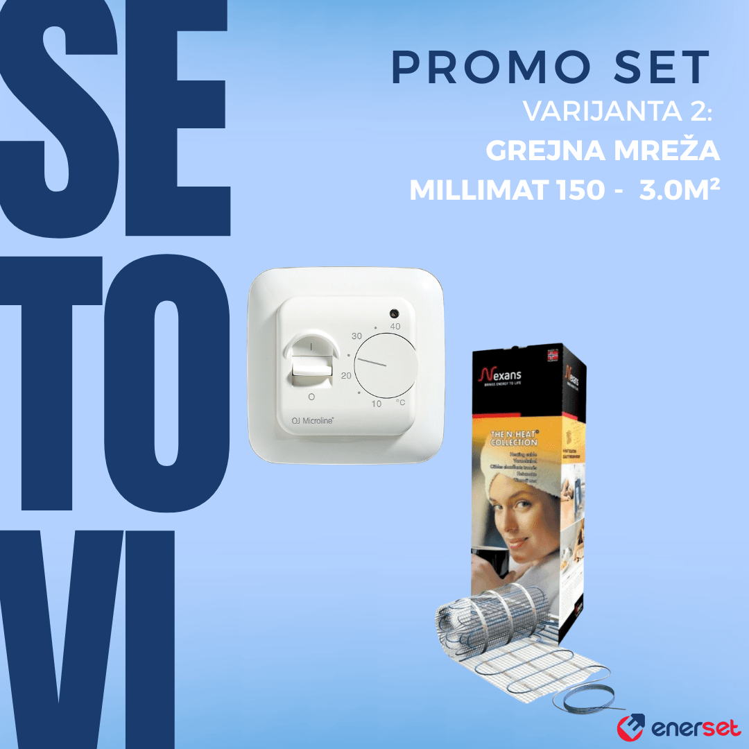 - Varijanta 2: Sadrži grejnu mrežu MILLIMAT 150 površine 3.0 m². Pogodna za veća kupatila, kuhinje ili ulazne prostore.