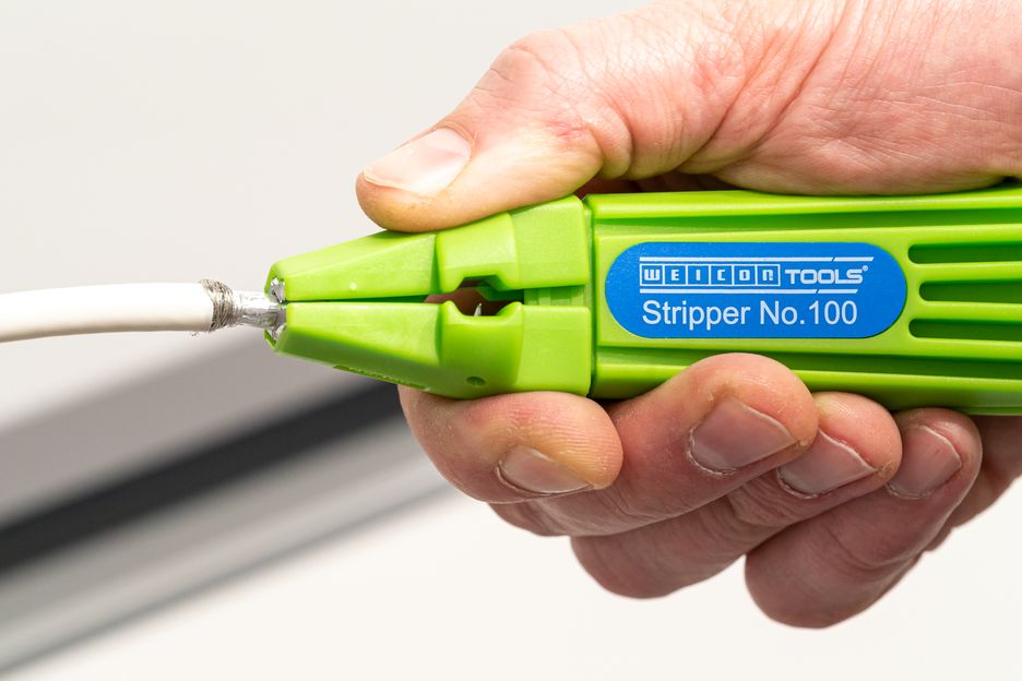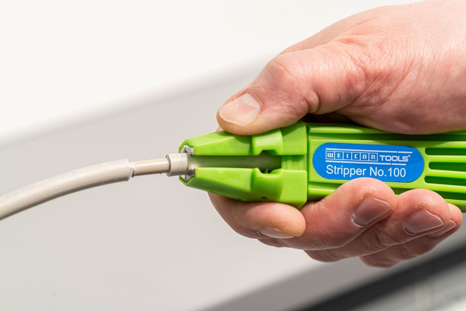 Alat Stripper No. 100 Green Line, univerzalni alat za skidanje izolacije sa za većinu standardnih napojnih, mrežnih i koaksialnih kablova u kućnim instalacijama. Višenamenski alat se koristi za skidanje izolacije kod raznih tipova kablova prečnika Ø 4 – 13 mm. Sa ovim alatom, sa kablova se može lako ukloniti spoljašnja izolacija čak i na mestima koja su teško dostupna, npr. u plafonima i zidovima, u ugradnim doznama i razvodnim kutijama, razvodnim ormanima. Takođe pogodan za postupno skidanje izolacije koaksijalnih kablova prilikom instaliranja satelitskih sistema.