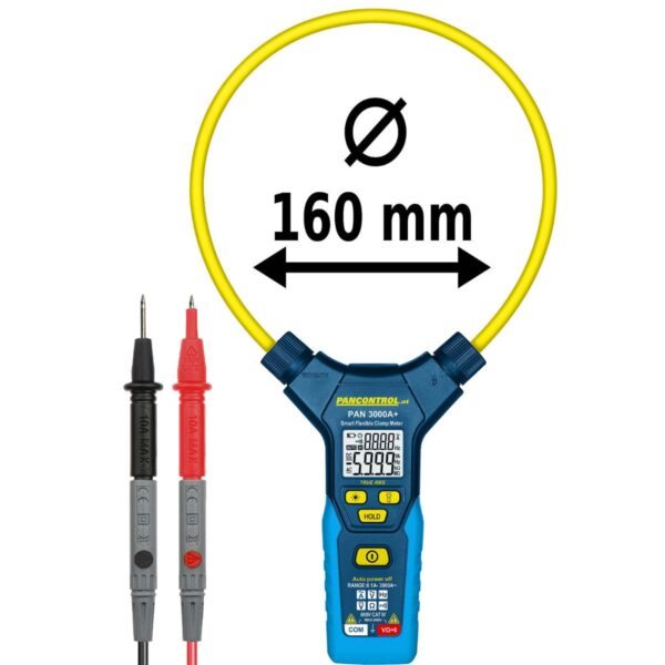 PAN 3000A+ se može koristiti za merenje naizmenične struje u opsegu 10mA – 3000A AC. Fleksibilna strujna klešta imaju savitljivi provodnik koji se na jednom kraju zabravljuje u uređaj. Na taj način je moguće obuhvatiti provodnike velikog preseka ili provodnike koji su na nepristupačnim mestima (npr. unutar elektro ormana).