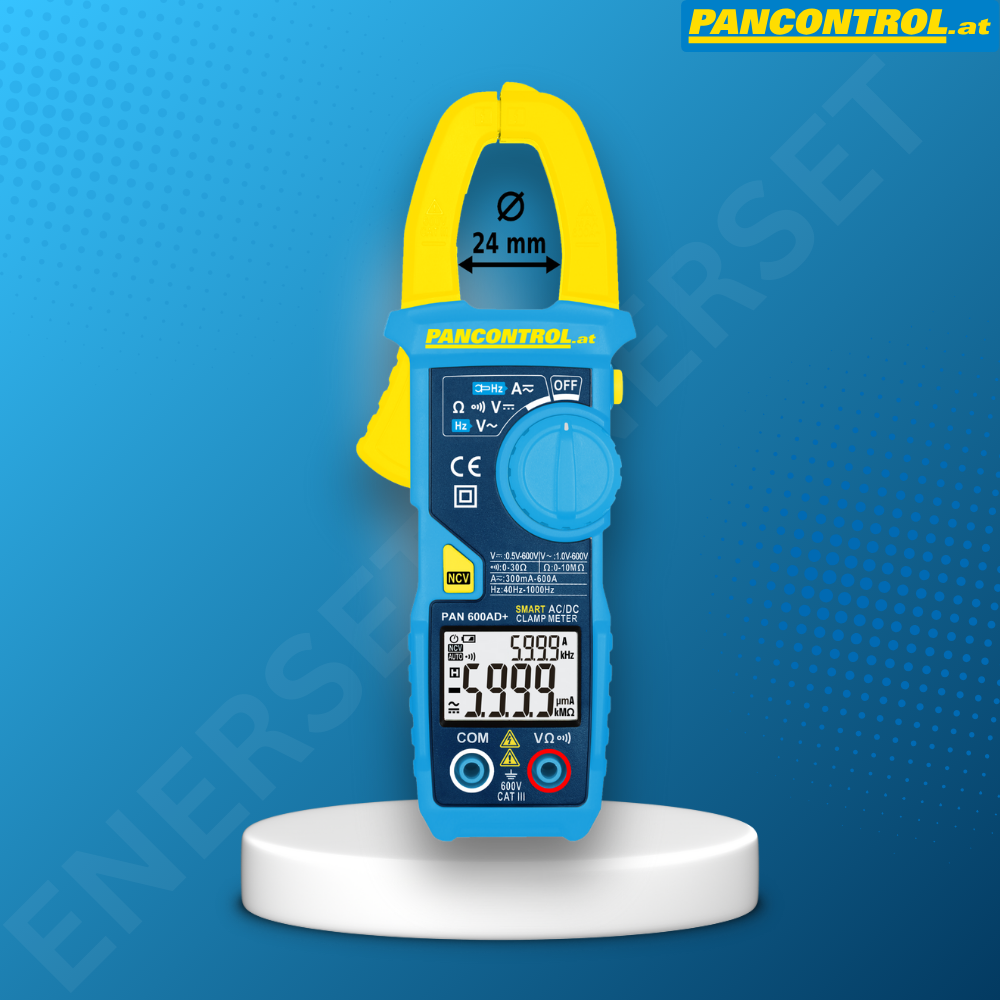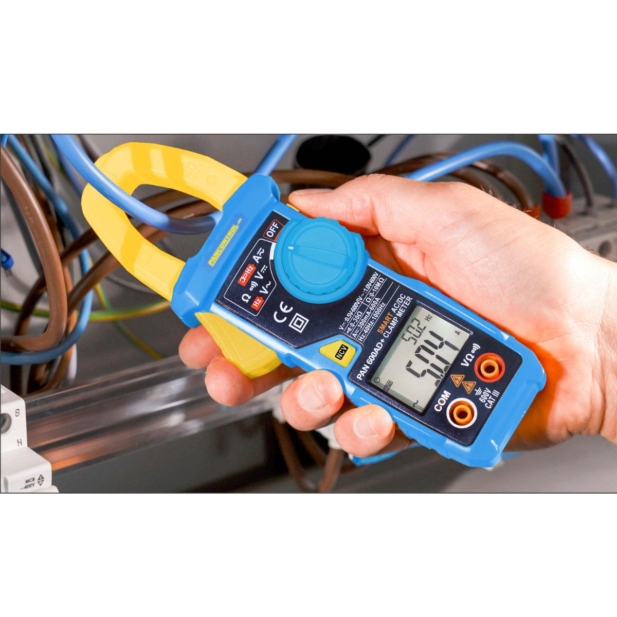 Strujna klešta PAN 600AD+ je kompaktni uređaj za merenje kompanije PANCONTROL. Koristi se za merenje jednosmerne i naizmenične struje, jednosmernog i naizmeničnog napona, otpora i učestanosti. Dodatne korisne funkcije su ispitivanje kontinuiteta, jednopolni test faze, bezkontaktna detekciju napona (NCV). Uz strujna klešta se isporučuju dve ispitne pipalice. PAN 600AD+ ima funkciju automatskog izbora merene veličine, automatski izbor opsega, automatsko isključivanje i zadržavanje podataka.