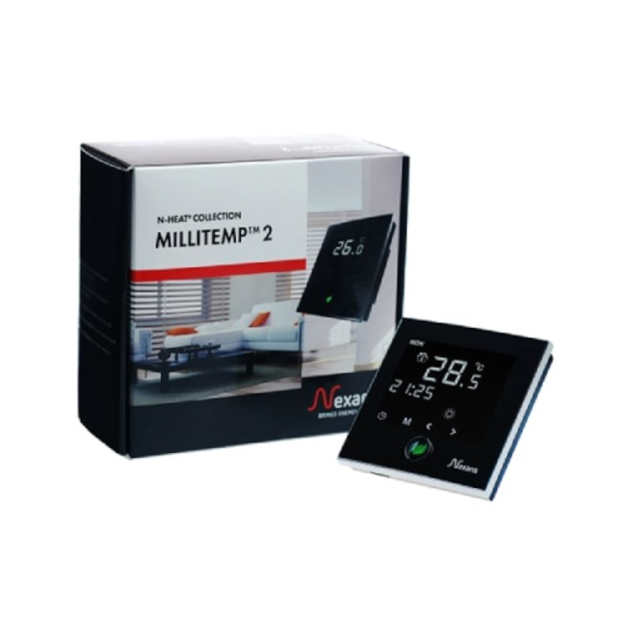 Digitalni termostat MILLITEMP 2 je elegantan uređaj sa ekranom osetljivim na dodir, idealan za kontrolu temperature u sistemima električnog podnog grejanja. Programabilan je i može se konfigurisati da održava konstantnu temperaturu ili da radi prema dnevnom/noćnom programu štednje. Ovaj termostat može automatski prilagođavati temperaturu prema vremenu i danu u sedmici, čime se smanjuje potrošnja energije. Mogućnost programiranja 4 perioda dnevno, 7 dana u sedmici, pruža efikasno upravljanje potrošnjom energije. Ovaj termostat takođe poseduje inteligentnu kontrolu grejanja pomoću adaptivne funkcije, koja na osnovu ‘iskustva’ predviđa vreme uključenja i trajanja rada grejanja radi postizanja i održavanja zadate temperature u određenom periodu. Na taj način grejanje je dodatno optimizovano, a komfor korisnika je podignut na viši nivo.