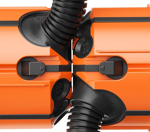 Ulazi za kablove i cevi prolaze kroz elastične ECON® membrane koje se same zaptivaju, pa nije potrebna dodatna obrada niti upotreba alata. Integrisani sistemi protiv klizanja obezbeđuju siguran prihvat kablova i cevi, čime se sprečava njihovo izvlačenje i povećava bezbednost i stabilnost instalacije. U tankim šupljim zidovima ugradna dozna 9264-12 omogućava ulaz instalacionih cevi pod uglom do 90° bez oštećenja materijala.