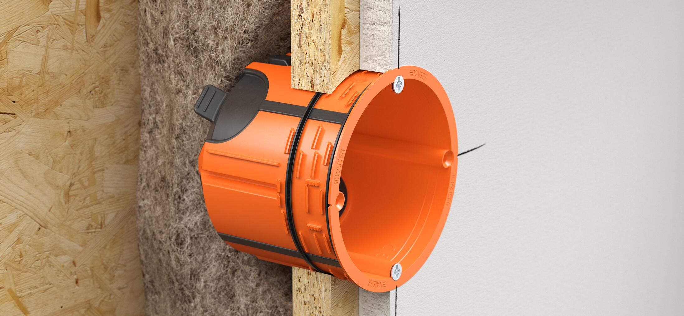 Ugradna dozna 9264-12 O-range ECON® Fix predstavlja novu generaciju kutija za šuplje zidove i drvene konstrukcije. Zahvaljujući vazdušno nepropusnom dizajnu i materijalu otpornom na visoke temperature, obezbeđuje sigurnu i energetski efikasnu instalaciju. Specijalno dizajnirani način poravnanja i ugradnje čini je pogodnim rešenjem je za OSB ploče, gips-vlaknaste ploče, CLT lamelirano drvo, puno drvo i čak zidane konstrukcije, čime pokriva širok spektar primene u modernoj gradnji.