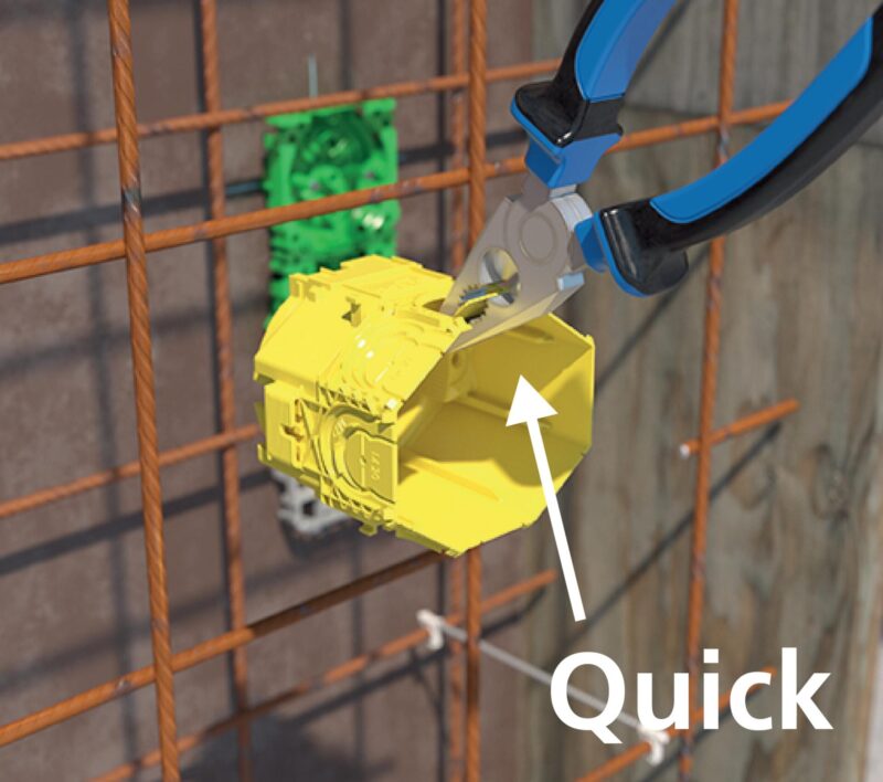 Nova tehnologija omogućava da se željeni otvor za cev lako i precizno otvori zalamanjem perforiranog dela kutije jednim naglim pokretom kombinovanih klešta.