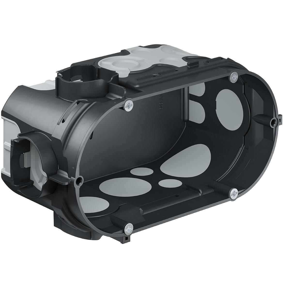 Ugradna dvostruka dozna za elektroniku 1656-21 poseduje dodatne ulaze, preko elastičnih membrana, za kablove i instalacione cevi po obodu kutije, kao i ulaze za dvostruke kablove do Ø11mm. Šest vijčnih kupola i dva proširena polja za kandže nude sigurne opcije montaže za sve tipove uređaja i na taj način zaokružuju opseg ugradnih dozni za pun zid.