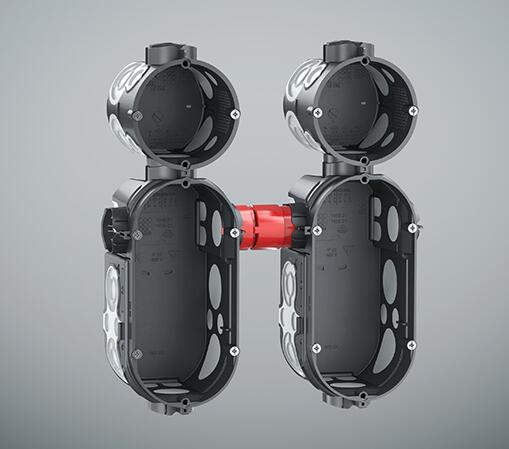 Dvostruka ugradna dozna ECON® sa multi-membranskom tehnologijom idealna je za ugradnju u zidove od opeke i drugih punih materijala, gde unutrašnji malter formira vazdušnonepropusni sloj sa sobne strane. Njen veliki instalacioni otvor bez središnjeg mosta i veoma prostran unutrašnji deo čine je savršenom za ugradnju blokovskih i prethodno ožičenih elemenata. Takođe, stvara optimalan prostor za smeštaj kablova za multimedijalne priključke, kao i za održavanje radijusa savijanja mrežnih kablova, čime se osigurava najbolji mogući prenos podataka.