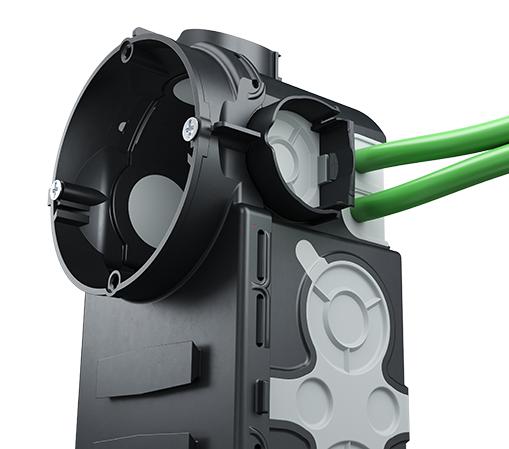 Zahvaljujući svom dizajnu, ova kutija za elektroniku pruža izuzetnu fleksibilnost za instalaciju specijalnih i multimedijalnih priključaka, uz dovoljno prostora za rezervnu dužinu kablova.