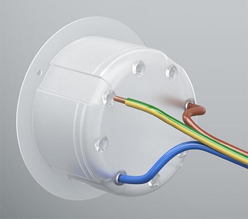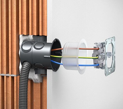 • Ne ometa ožičenje: Zbog male dubine ugradnje, umetak ne ograničava prostor potreban za povezivanje kablova unutar dozne.