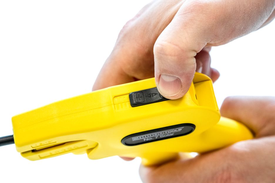 Automatska klašta za blankiranje Wire Stripper No. 7 Solar za skidanje izolacije svih uobičajenih solarnih kablova, kao što je H1Z2Z2-K od 1,5 do 10 mm². Sa automatskim sistemom za skeniranje preseka provodnika podešavanje preseka nije potrebno. Skidač izolacije ima vizuelnu skalu dužine blankiranja od 8 do 24 mm što omogućava veoma precizan i siguran rad.
